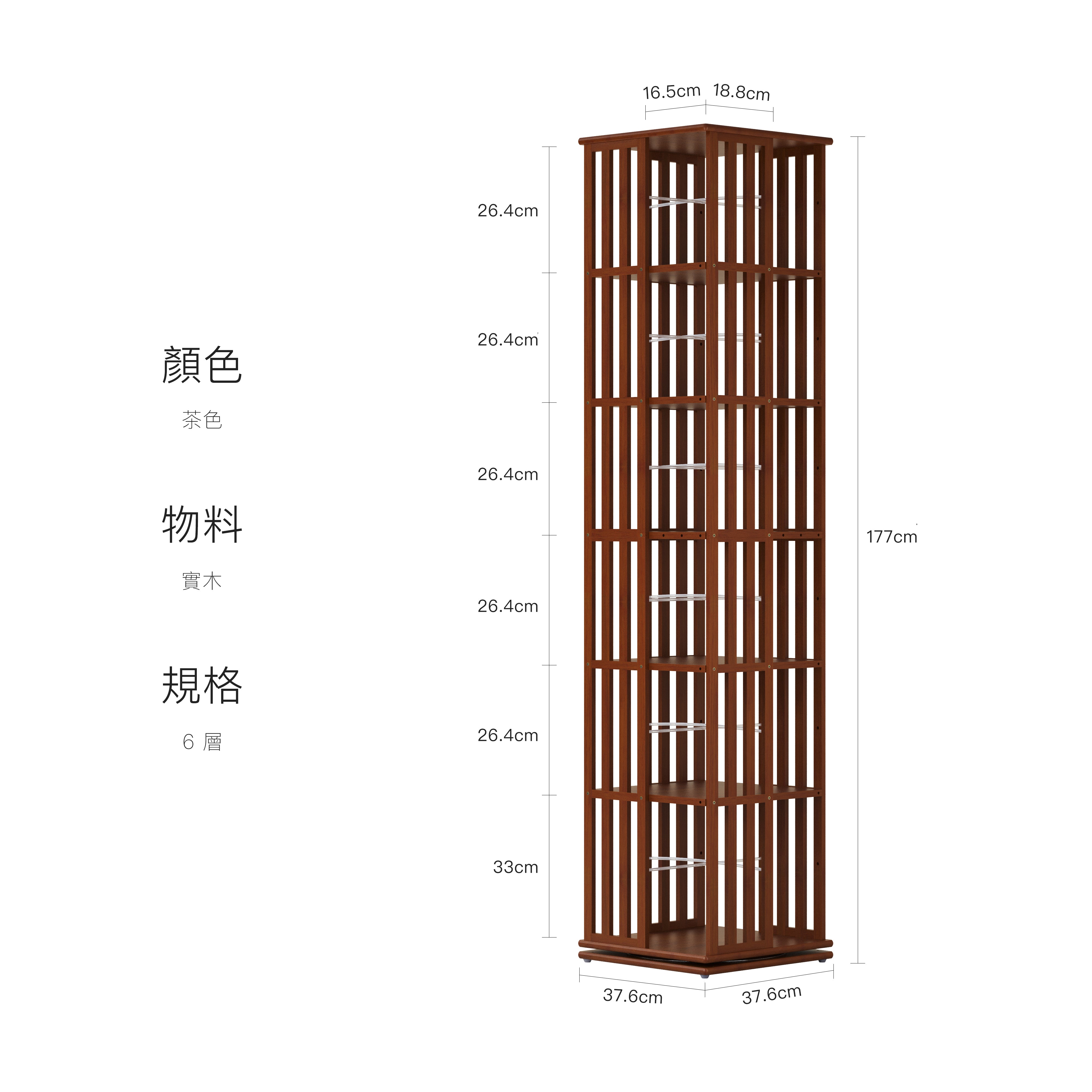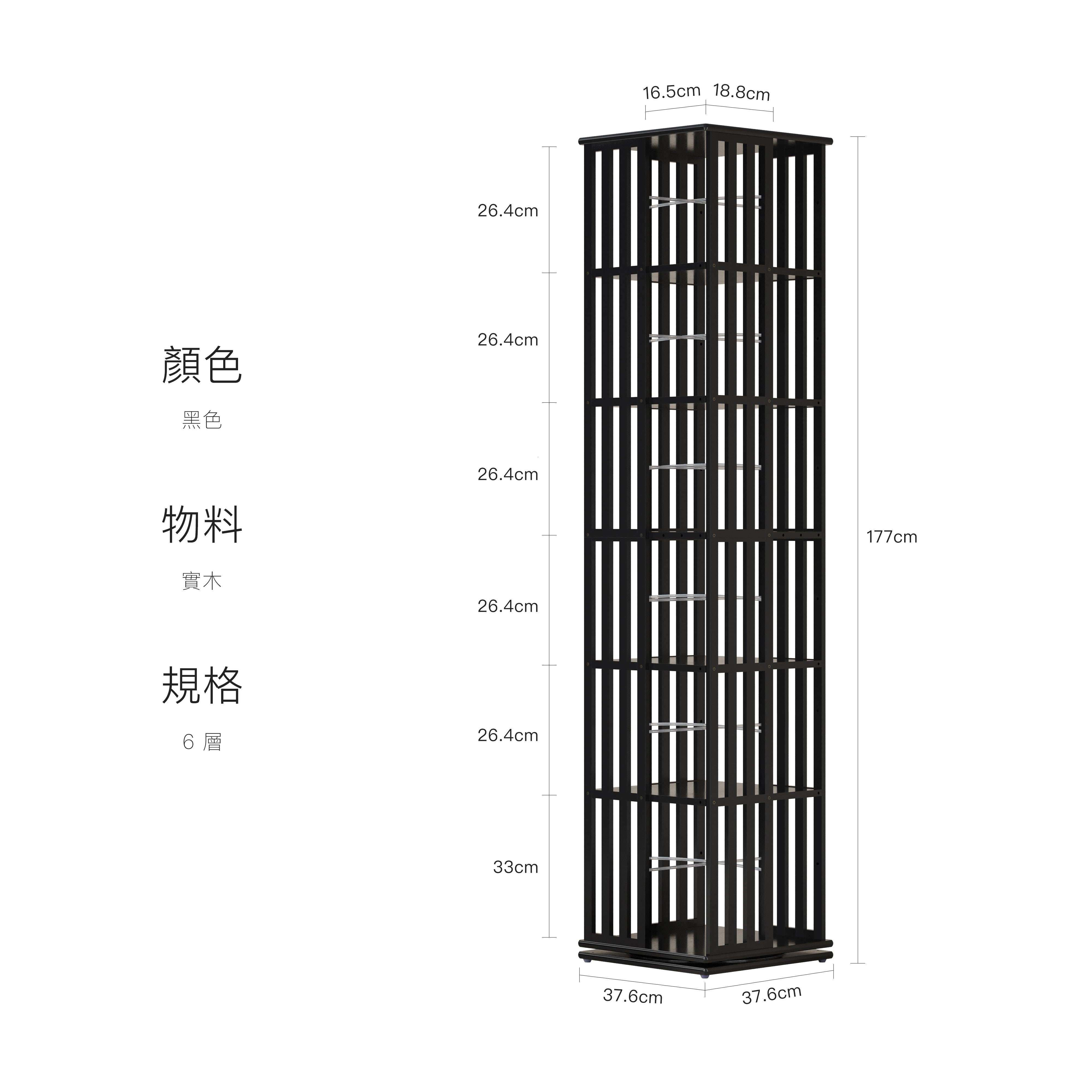 6 層:37.6 × 37.6 × 177 cm