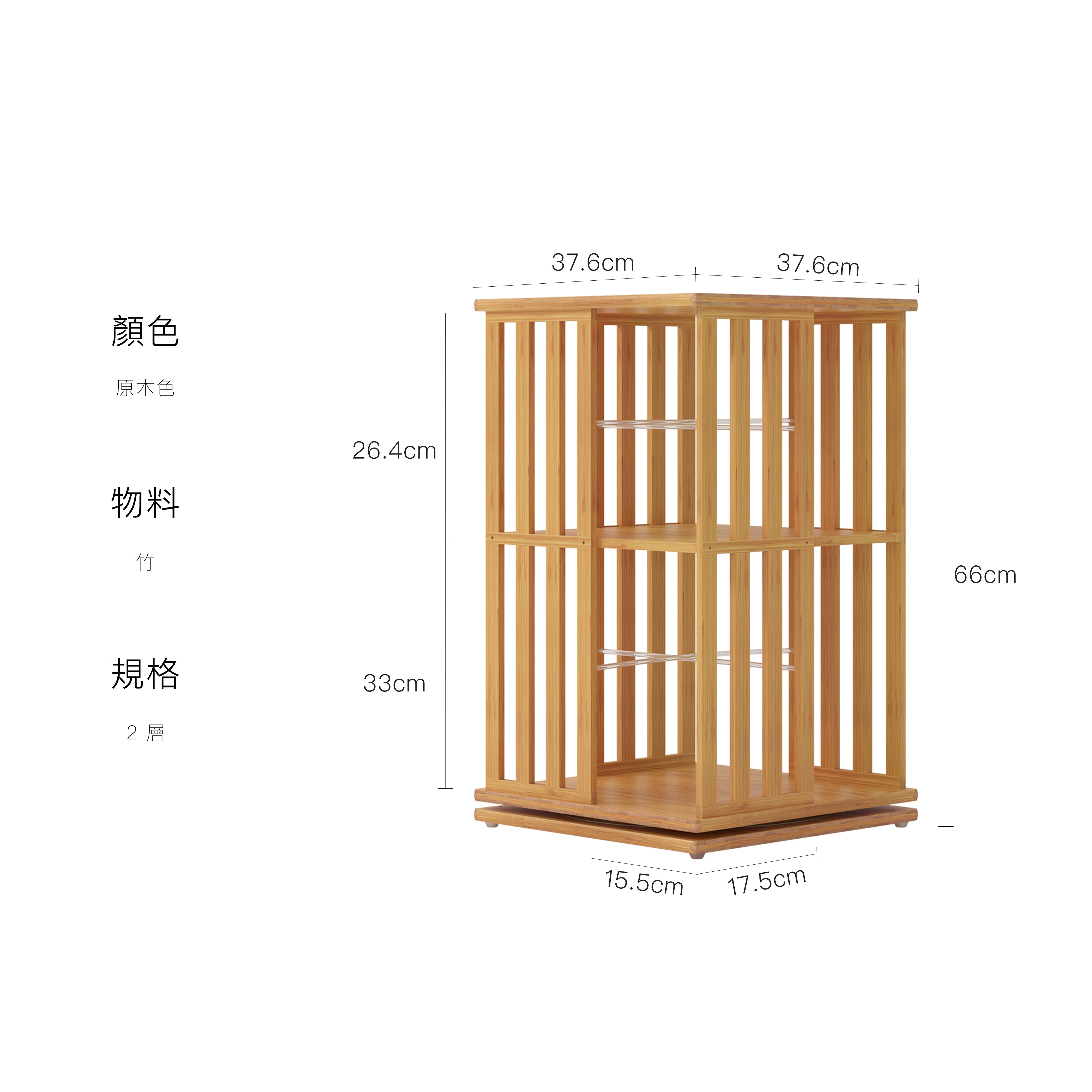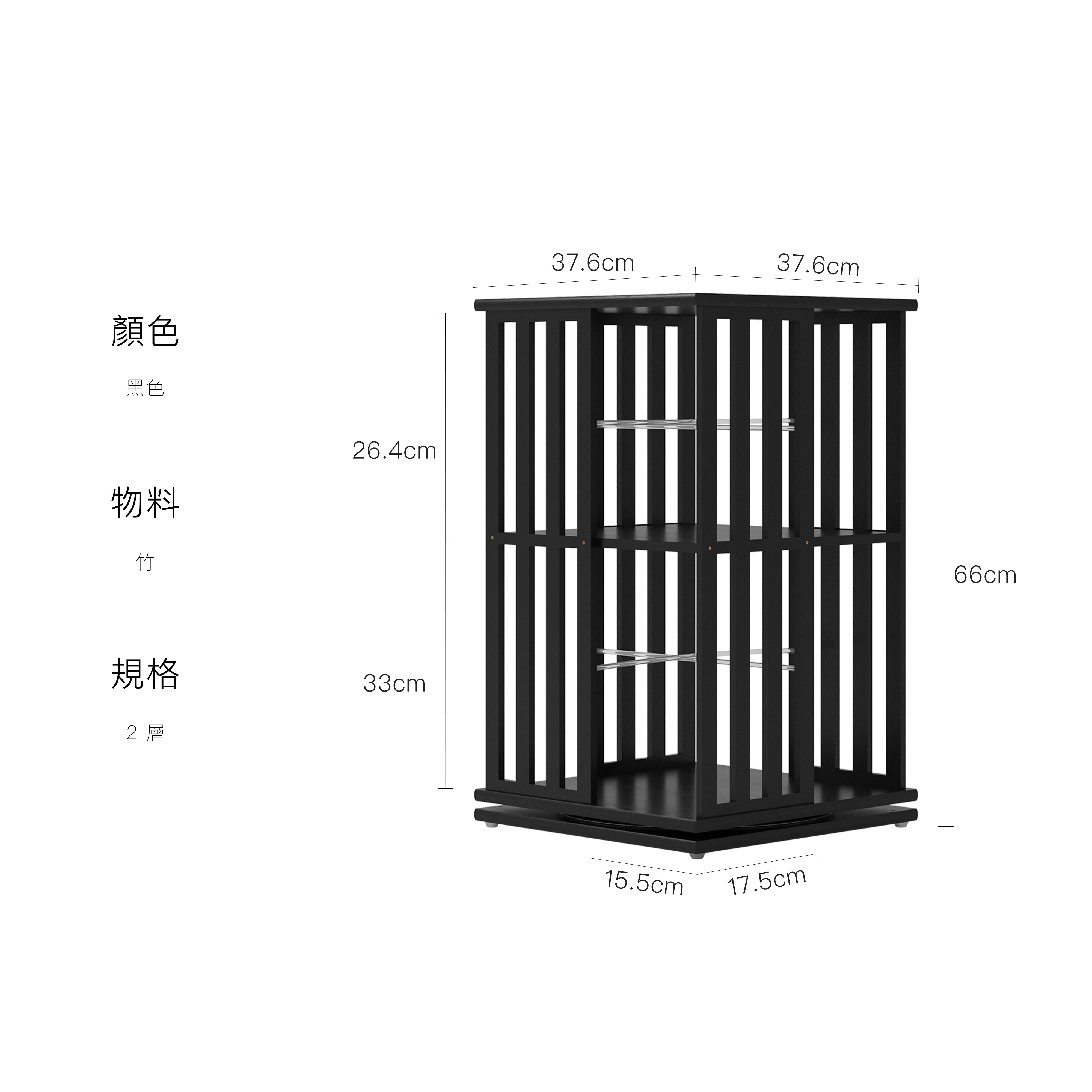 2 層:37.6 × 37.6 × 66 cm