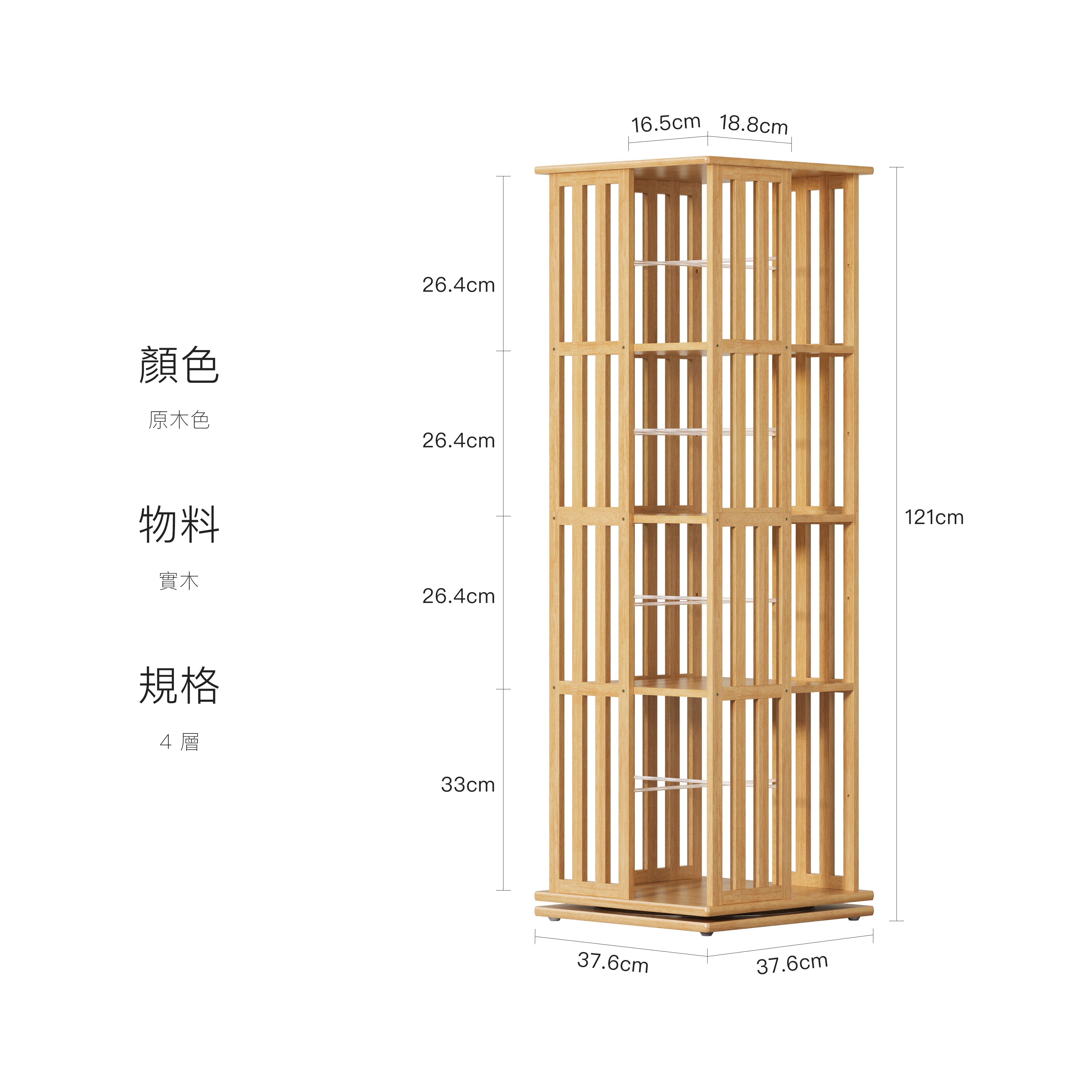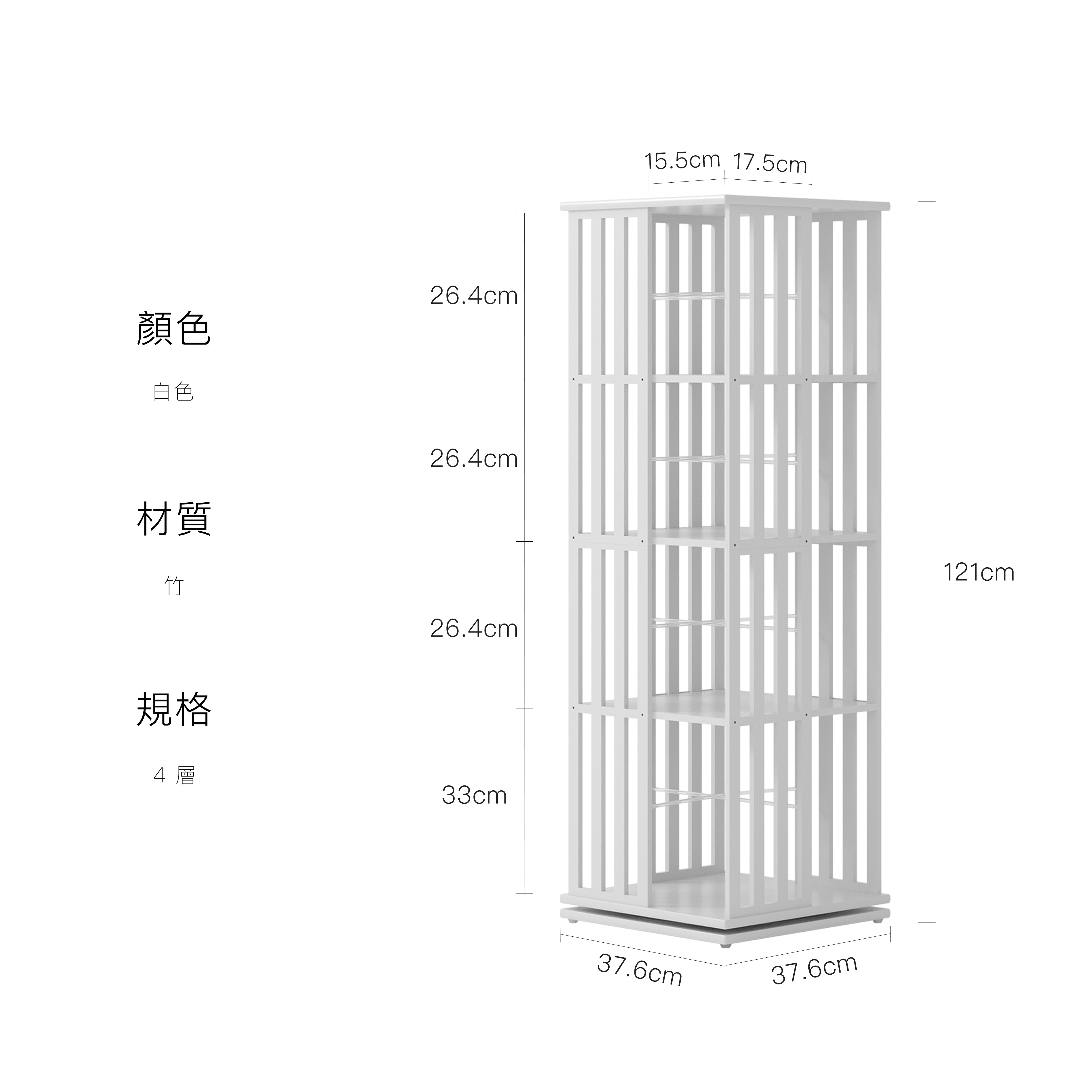 4 層:37.6 × 37.6 × 121 cm