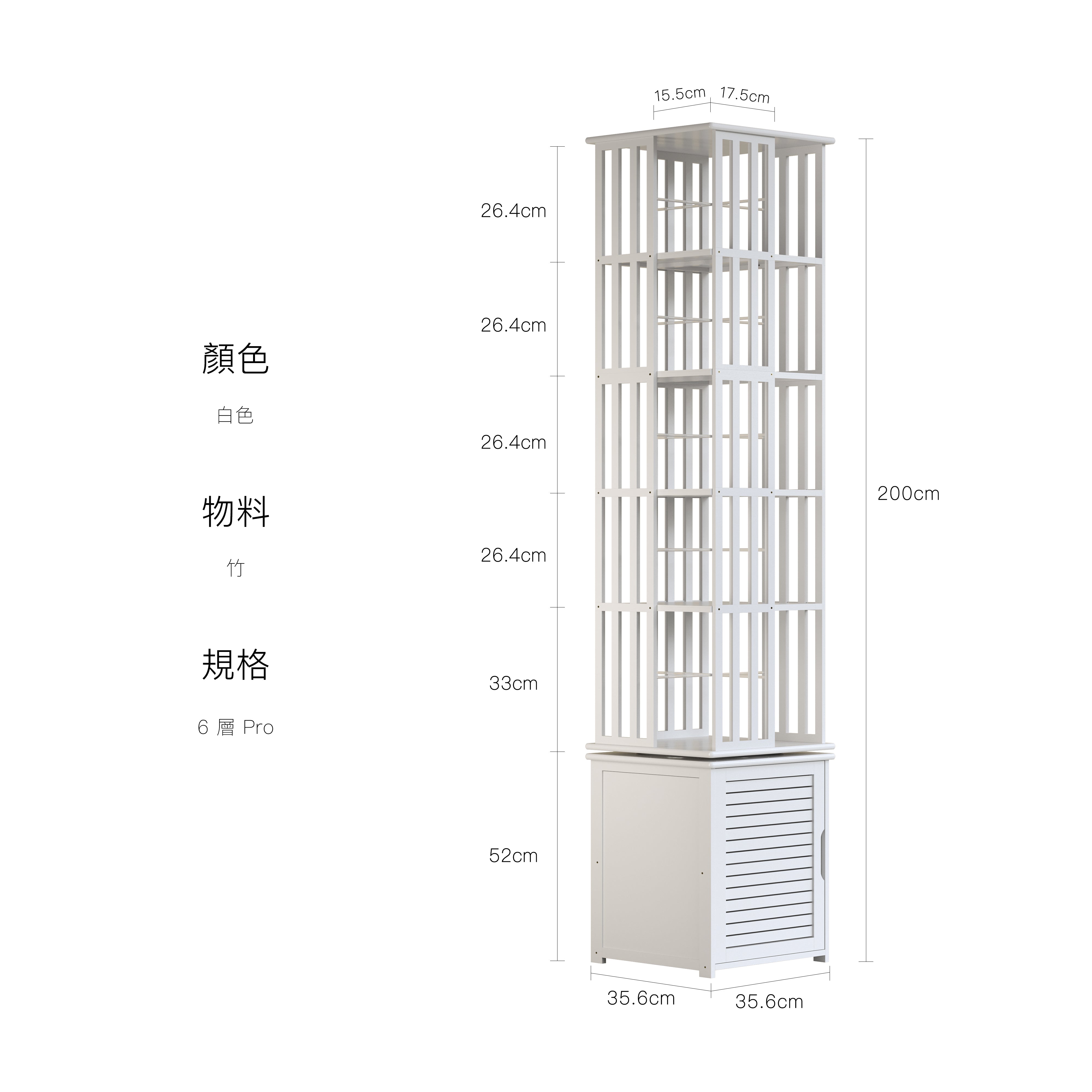 6 層 Pro:35.6 × 35.6 × 200 cm
